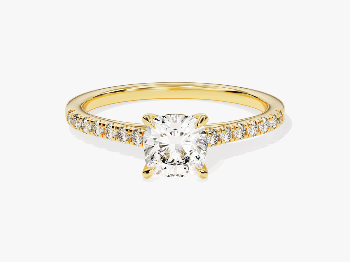 Cushion Cut Moissanite Engagement Ring with Pave Set Side Stones (1.00 CT)