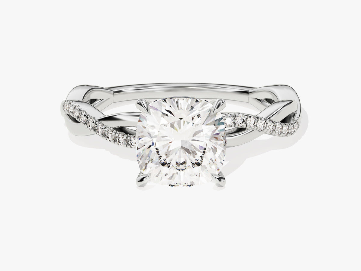 The Cushion Twisted Moissanite Engagement Ring is a breathtaking and elegant symbol of love and commitment. This exquisite ring features a stunning cushion-cut moissanite at its center, renowned for its square or rectangular shape with rounded corners and remarkable sparkle. Its intricate twisted band design adds a unique and romantic touch to the classic solitaire style. Along the band, small moissanite stones are meticulously set using the paving technique.