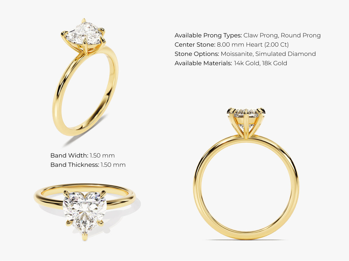 Ravishing and unique, this moissanite engagement ring in 14k gold features a dainty center stone.