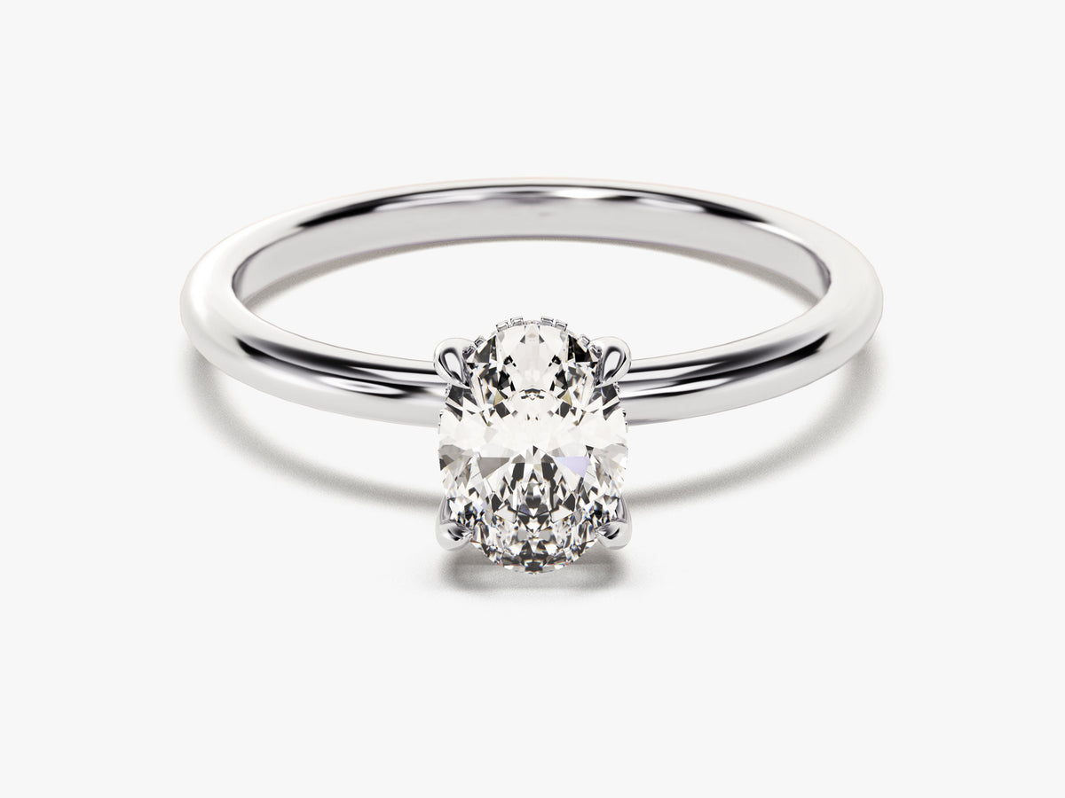 Behold timeless elegance with our Hidden Halo Oval Moissanite Engagement Ring. Crafted with exceptional attention to detail, its luxe design combines a striking oval center stone and a captivating halo of accent stones. With its timeless charm and sophisticated style, this beautiful ring will surely be cherished forever.