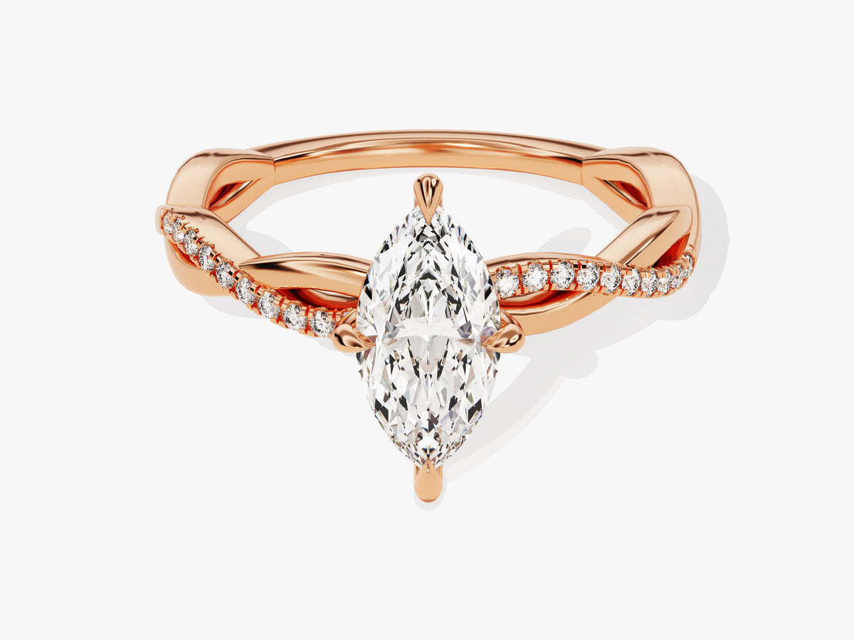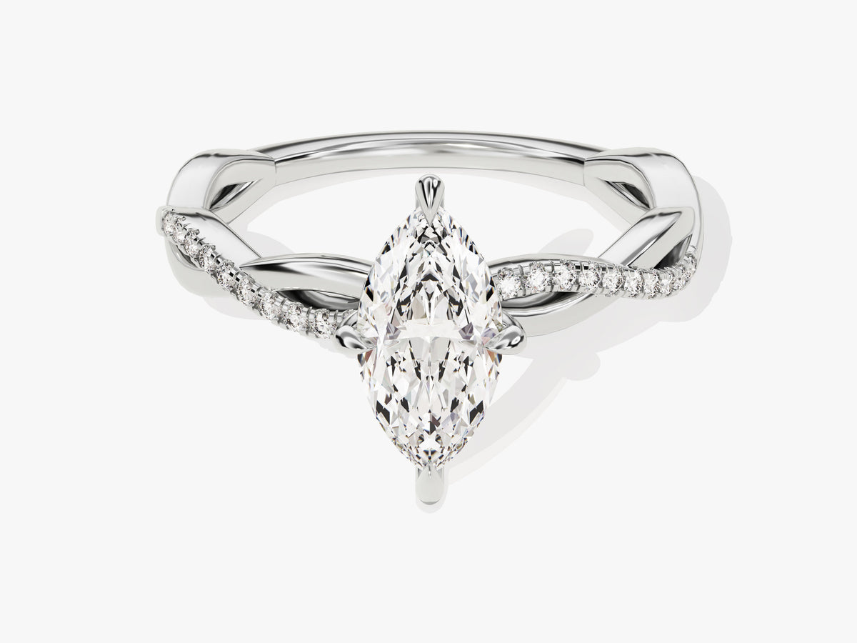 Marquise Twisted Moissanite Engagement Ring with Pave Set Side Stones (1.00 CT)