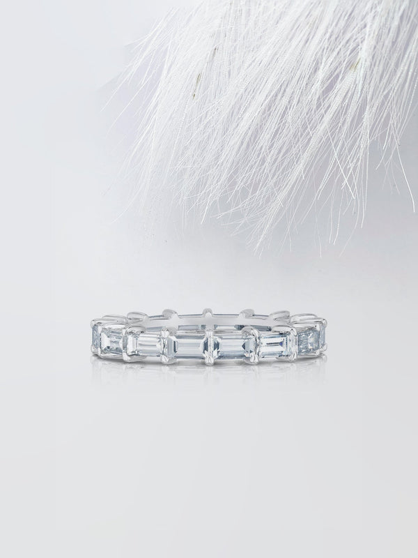Baguette Cut Moissanite Full Eternity Diamond Wedding Band in Yellow Gold