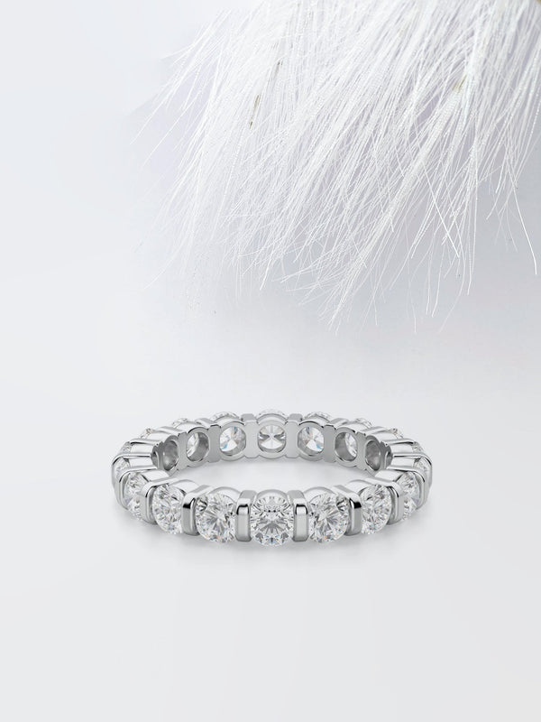 Round Cut Moissanite Bar Set Diamond Wedding Band for Her