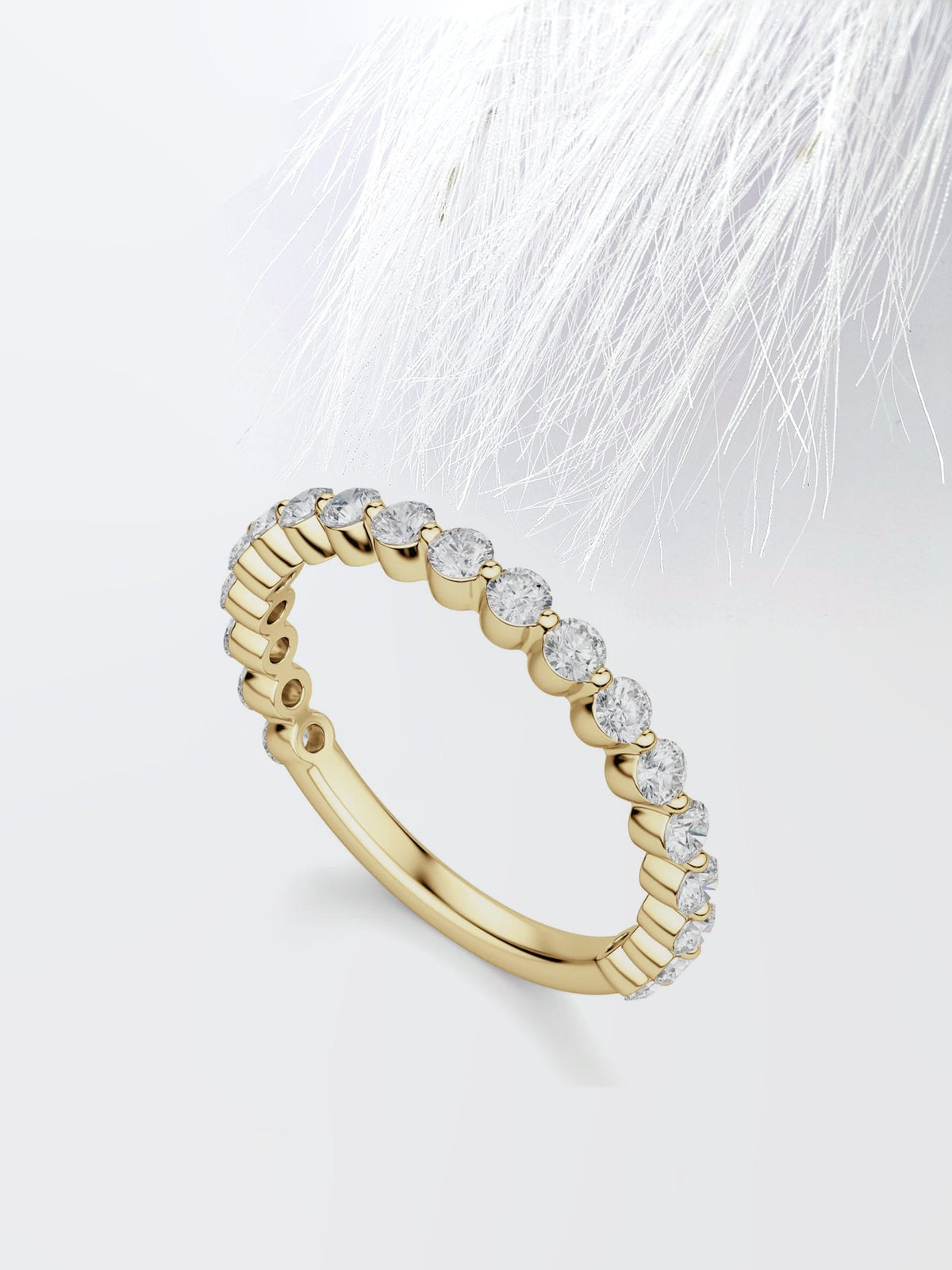 Round Cut Moissanite Shared Prong Diamond Wedding Band in Gold