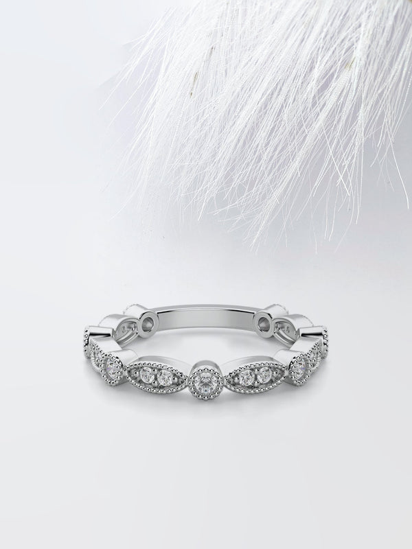 Round Cut Moissanite Vintage Diamond Wedding Band in Solid Gold