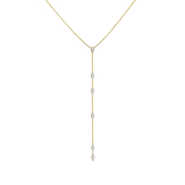 0.60 TCW Marquise Moissanite Diamond Bezel Starstruck Lariat Pendent Necklace