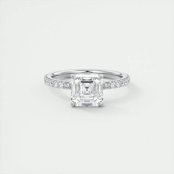 2CT Asscher Moissanite Solitaire Pave Setting Engagement Ring