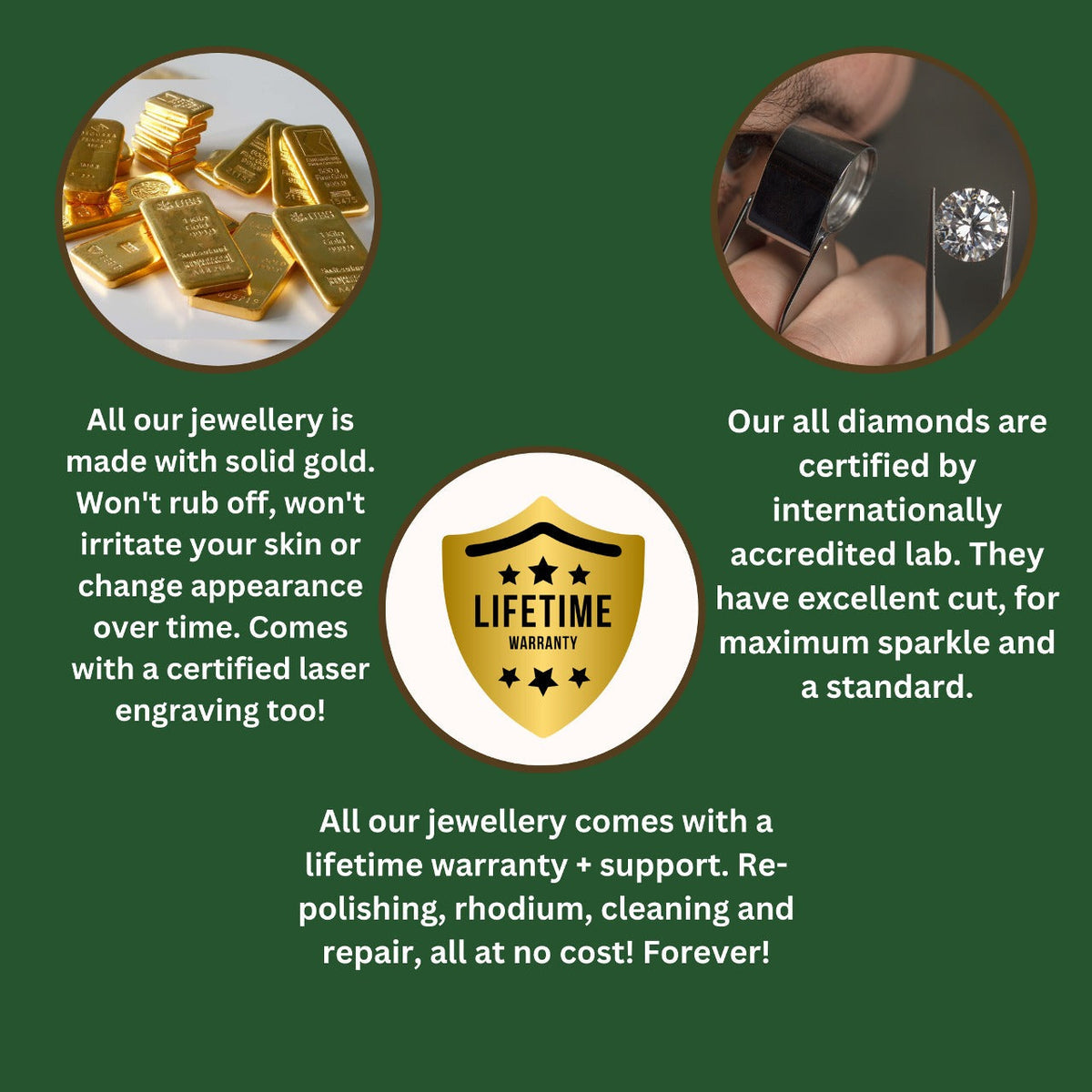 We ensure that all our diamonds meet the highest standards of quality. Each piece is thoroughly inspected, and we offer certificates for diamonds wherever applicable. For moissanite jewelry, we guarantee exceptional quality and allow verification at your local store.